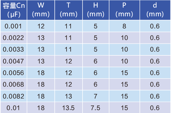 | 容量范圍/Capacitance Range | 0.001 ~ 0.1μF |